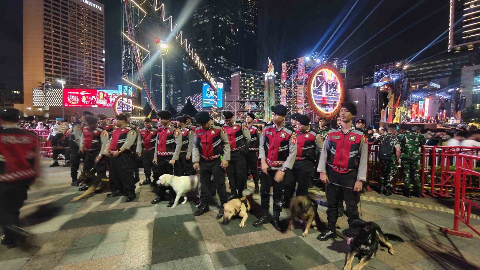 Jakarta – Korps Sabhara Baharkam Polri mengerahkan satuan K-9 (anjing pelacak) untuk memperkuat pengamanan malam pergantian Tahun Baru di kawasan Bundaran Hotel Indonesia (HI), Rabu (31/12/2025) malam. Langkah ini dilakukan untuk memastikan situasi tetap aman dan kondusif di tengah ramainya aktivitas masyarakat.