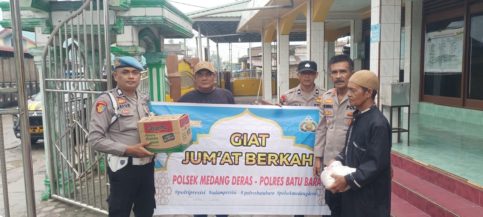 Kapolsek Medang Deras Salurkan Bantuan Sembako kepada Kaum Dhuafa dalam Program Jumat Berkah
