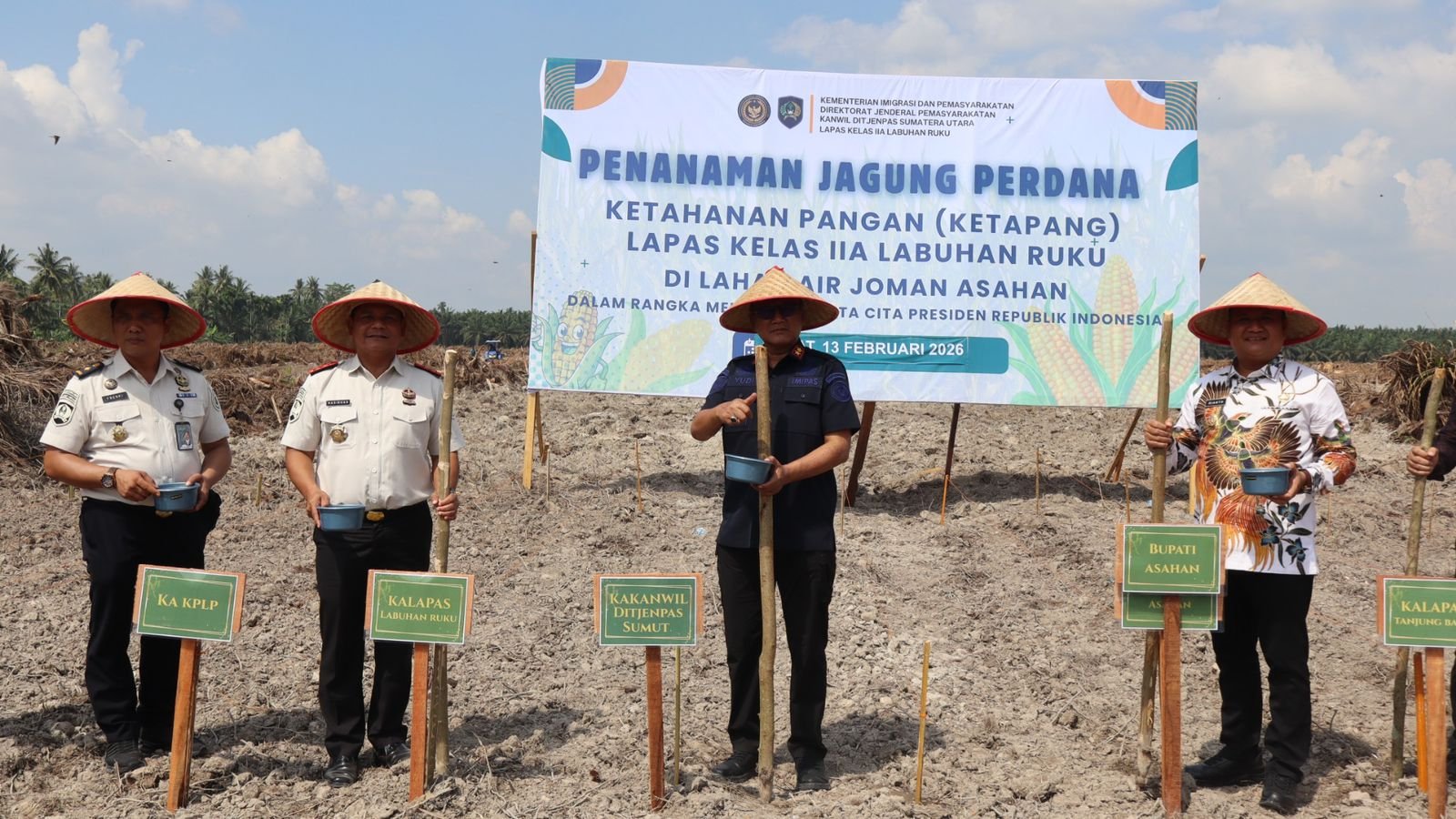Batu Bara – Semangat kolaborasi dan inovasi mewarnai Lahan Air Joman saat jajaran Pemasyarakatan Sumatera Utara (Sumut) dan Pemerintah Kabupaten (Pemkab) Asahan bersama-sama melakukan penanaman jagung perdana, Jumat (13/02).