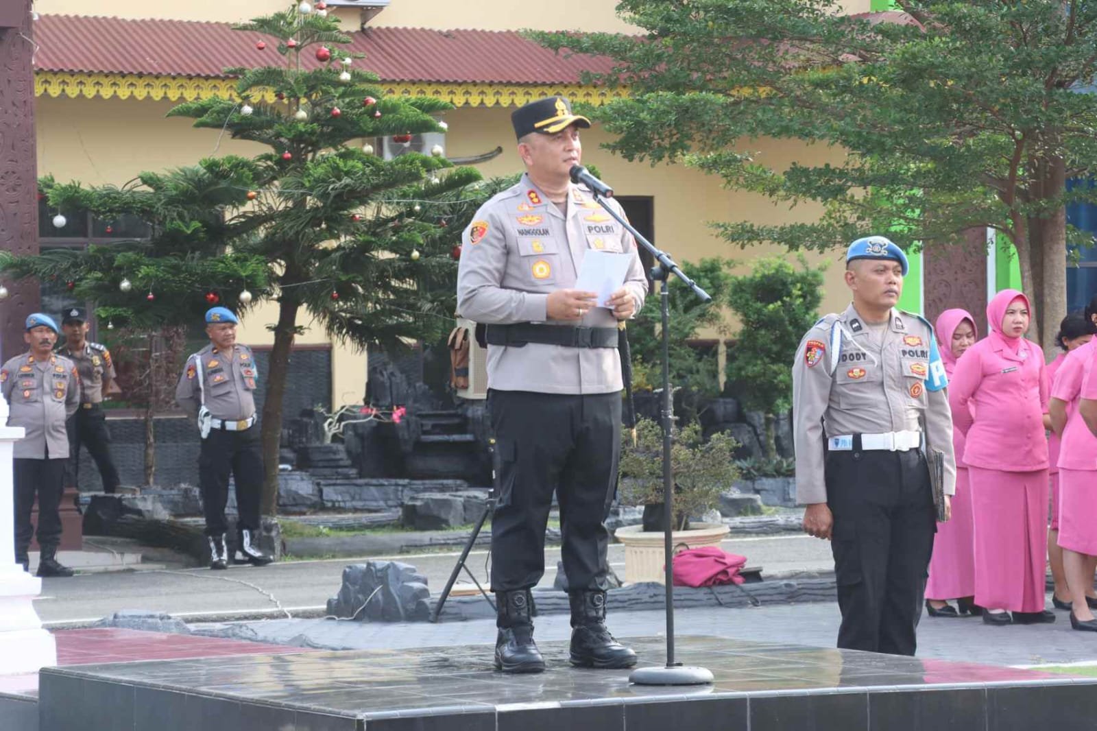Dalam amanatnya, Kapolres Batu Bara, AKBP Doly Nelson H.H. Nainggolan, S.H., M.H., menyampaikan penekanan terkait pentingnya profesionalisme dalam menjalankan tugas kepolisian. Beliau juga mengingatkan seluruh jajaran untuk terus meningkatkan kualitas pelayanan kepada masyarakat.
